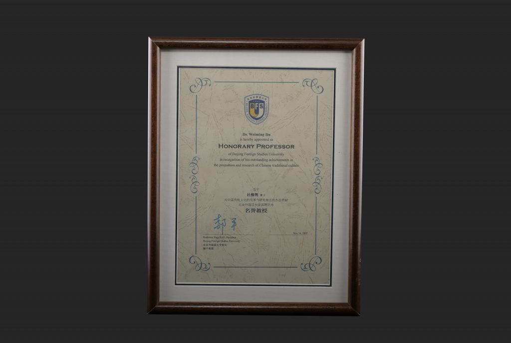 2005年9月28日,北京外國語大學授予杜維明先生名譽教授稱號,表彰其在跨文明對話與儒學現代化領域的開創性貢獻。時任校長郝平親自頒授聘書,杜維明在受聘儀式上作《儒學復興與全球倫理構建》主旨演講。