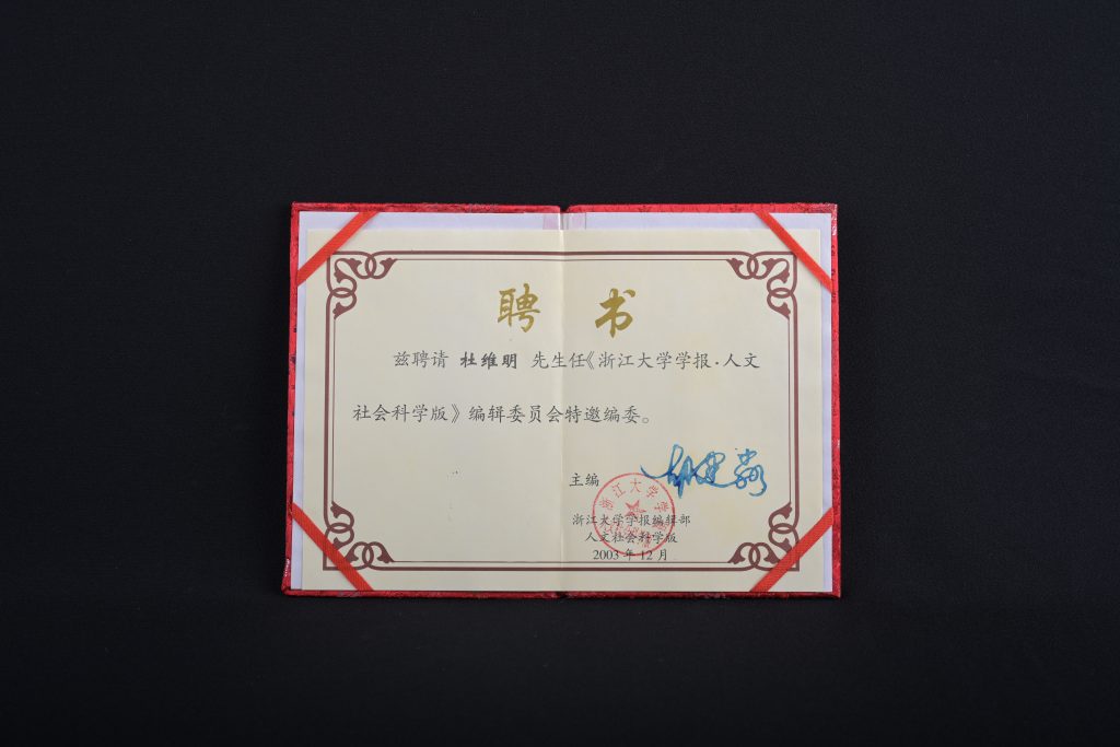 2003年12月,杜維明獲聘《浙江大學學報·人文社會科學版》編輯委員會特邀編委。《浙江大學學報(人文社會科學版)》創刊於1955年,是浙江大學主辦、中國教育部主管的綜合性學術理論刊物,內容涉及文學、史學、哲學、政治學、經濟學、法學、教育學、管理學等,在保持和發揚文史優勢的同時,注重加強理論學科、應用學科、新興學科和交叉學科的研究,內容豐富,在中國國內外有較大影響。