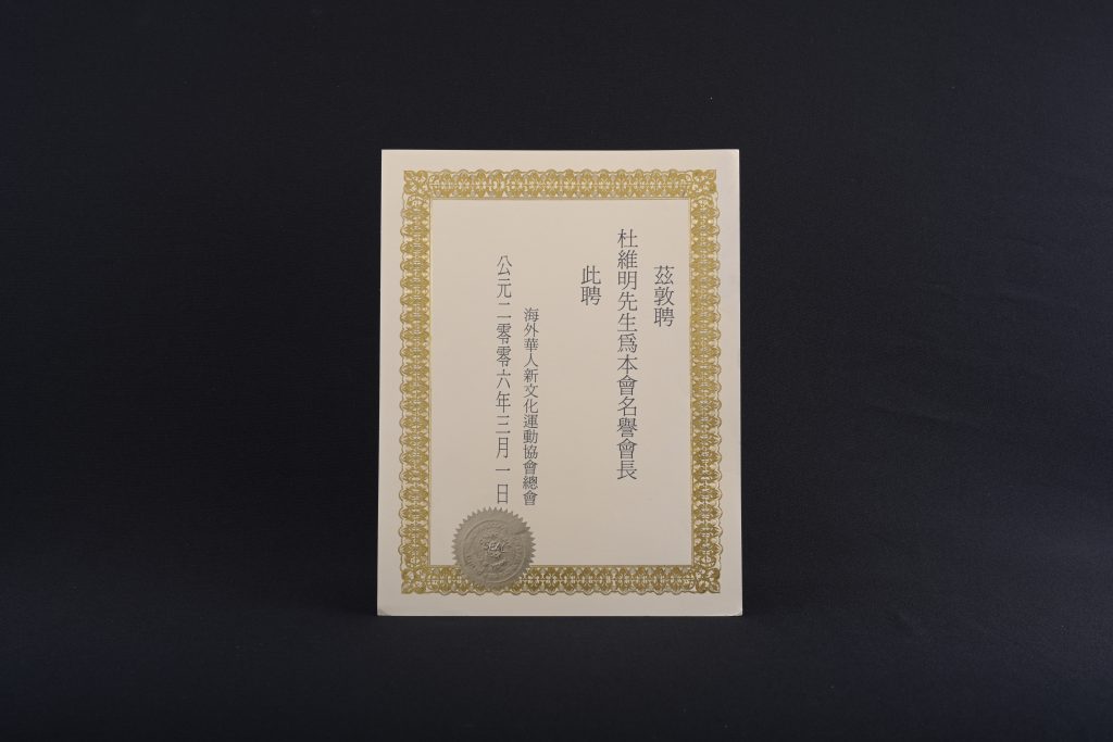 | 名稱 | 海外華人新文化運動協會名譽會長 |