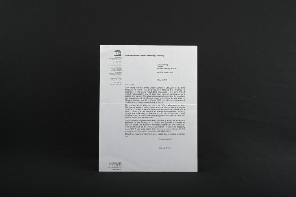 杜維明先生作為當代新儒家代表人物,長期致力於儒家思想的現代轉型與文明對話研究。2008年,他受邀參加聯合國教科文組織(UNESCO)主辦的以青年為主題的高級別會議。杜維明的學術實踐與UNESCO推動文明互鑒、倫理建設的理念高度契合,尤其重視青年在跨文化對話和全球倫理構建中的作用。他指出,青年是文明對話和價值傳承的關鍵力量,並長期關注全球化背景下青年的文化認同與價值選擇。儘管2008年他在UNESCO青年主題活動中的具體記載有限,但早在2004年甚至更早,杜維明就已深入參與UNESCO的文明對話專案,多次在公開演講中宣導青年應主動吸收多元文化智慧,培養批判性思維與跨文化溝通能力,以積極應對全球性挑戰。世界儒學大會邀請信