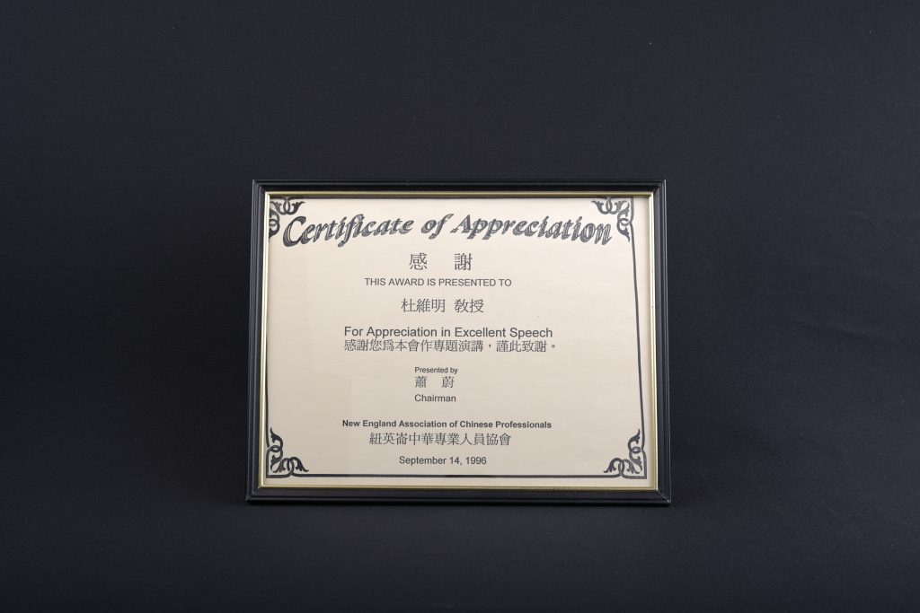 | 名稱 | New England Association of Chinese Professionals 專題演講感謝狀 |
