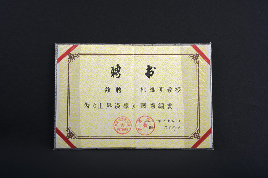 1998年5月,時任哈佛大學中國歷史與哲學教授、哈佛燕京學社社長杜維明先生受聘擔任《世界漢學》國際編委。