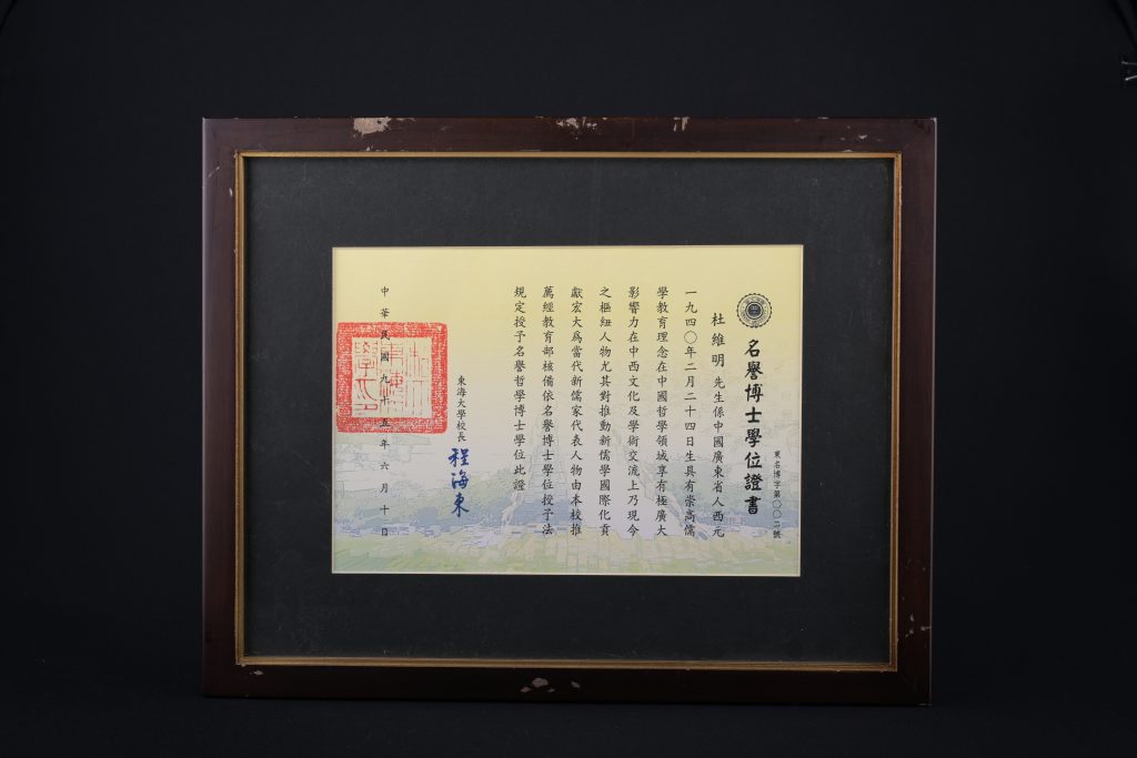 2006年6月10日,東海大學畢業典禮之上,時任校長程海東教授向杜維明先生頒授名譽博士學位。此為創校五十載以來所授第二位名譽博士殊榮,首位得主為貝聿銘先生。