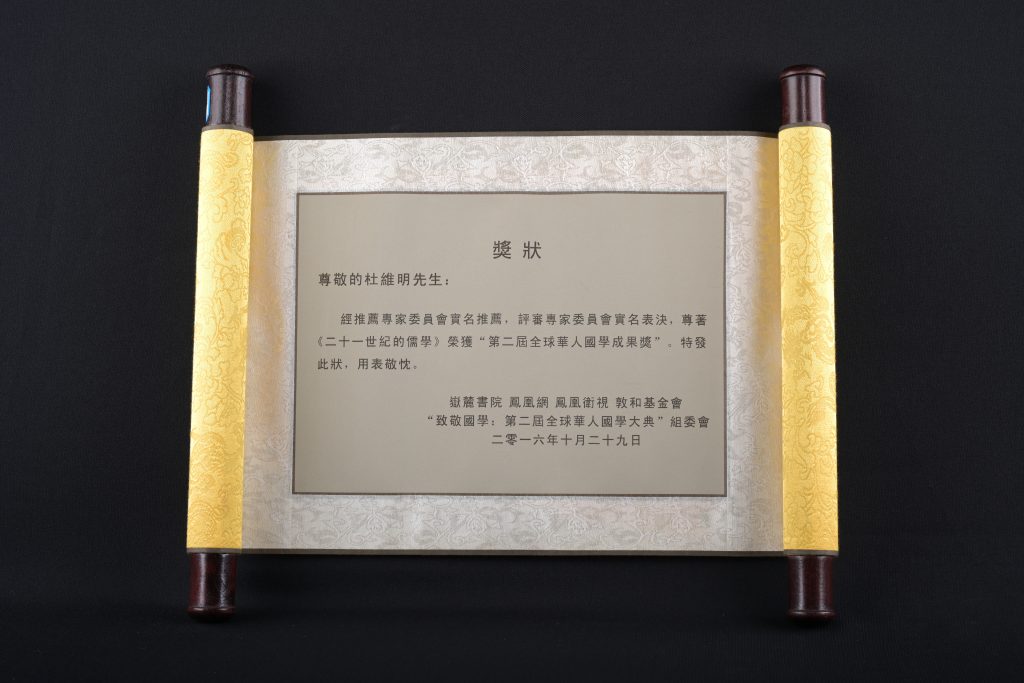 活動自2016年5月19日啟動以來,在學界、媒體和公益組織共同支援下,最終遴選出「國學成果獎」「國學傳播獎」及「國學終身成就獎」三大獎項獲獎名單。其中,「國學成果獎」表彰的是2011年1月至2015年12月初次公開出版的對國學傳承與創新做出重要貢獻且著者健在的國學研究著作。杜維明以著作《二十一世紀的儒學》獲此獎項。一同獲得成果獎的著作包括李澤厚《由巫到禮釋禮歸仁》、余英時《論天人之際——中國古代思想起源試探》等。